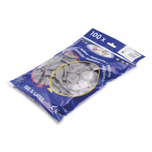 Nafukovací balónik strieborný Ø25cm `M` [100 ks]